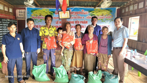 Nhân dịp Tết Bun Xuồng Hưa, Công ty TNHH Cao su Đắk Lắk (Daklaoruco) đã phối hợp cùng các đơn vị tổ chức trao tặng 110 suất quà nhu yếu phẩm cho các hộ dân có hoàn cảnh đặc biệt khó khăn tại bốn Nông trường