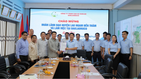 Ngày 19/9/2025, Công ty TNHH Cao su Đắk Lắk vinh dự được đón tiếp đoàn Ủy ban chính quyền huyện Lao Ngam đến thăm và chúc mừng Quốc khánh nước CHXHCN Việt Nam 2/9. Về phía Ủy ban, ngài Phết Pha Chăn Phim Thi Sản – Chủ tịch Ủy ban chính quyền huyện đã gửi lời chúc mừng nồng nhiệt tới Công ty. Đại diện Công ty, ông Đỗ Thiện Nghĩa Giám đốc Công ty trân trọng cảm ơn và chia sẻ niềm tự hào khi luôn nhận được sự quan tâm, hỗ trợ từ chính quyền địa phương.