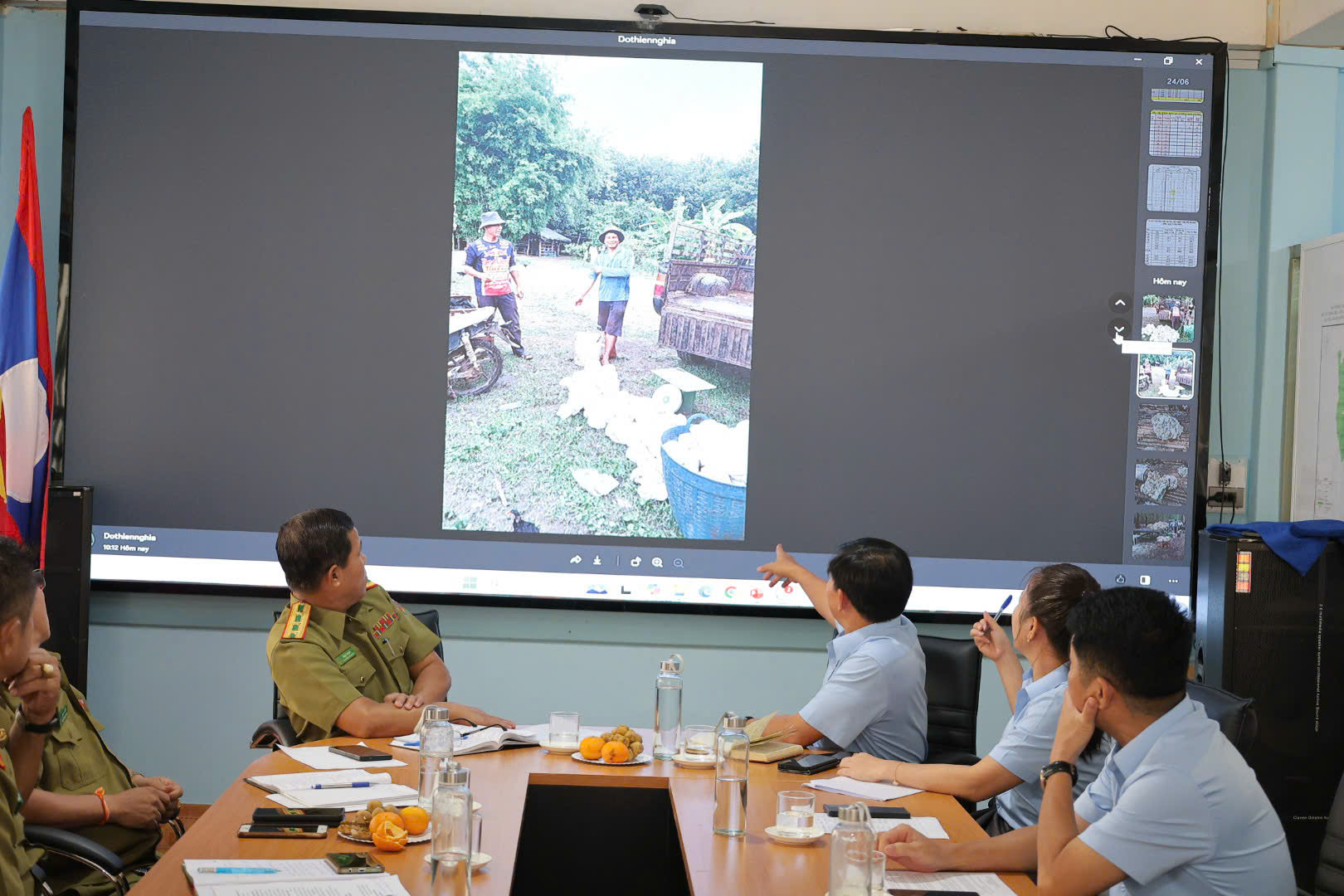 Tham dự cuộc họp, về phía Công ty có Ông Đỗ Thiện Nghĩa – Giám đốc Công ty, các Phó Giám đốc cùng Giám đốc Nông trường 1 và 3. Về phía Công an tỉnh Champasak có Ngài Đại tá Vi Xiên Đuông Khăm – Phó Giám đốc Công an tỉnh, đại diện lãnh đạo các phòng Công an Tỉnh cùng các cán bộ, chiến sĩ.
