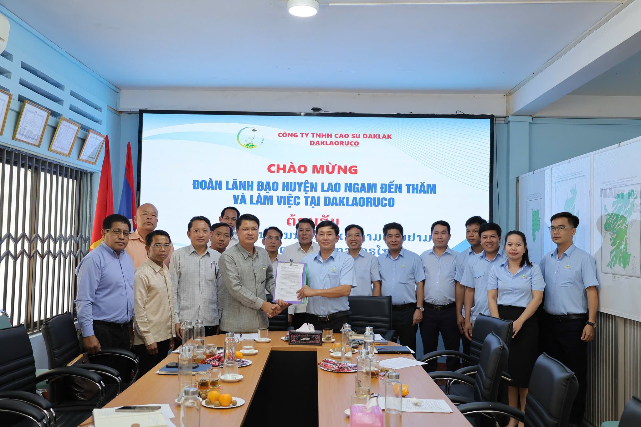 Ngày 19/9/2025, Công ty TNHH Cao su Đắk Lắk vinh dự được đón tiếp đoàn Ủy ban chính quyền huyện Lao Ngam đến thăm và chúc mừng Quốc khánh nước CHXHCN Việt Nam 2/9. Về phía Ủy ban, ngài Phết Pha Chăn Phim Thi Sản – Chủ tịch Ủy ban chính quyền huyện đã gửi lời chúc mừng nồng nhiệt tới Công ty. Đại diện Công ty, ông Đỗ Thiện Nghĩa Giám đốc Công ty trân trọng cảm ơn và chia sẻ niềm tự hào khi luôn nhận được sự quan tâm, hỗ trợ từ chính quyền địa phương.