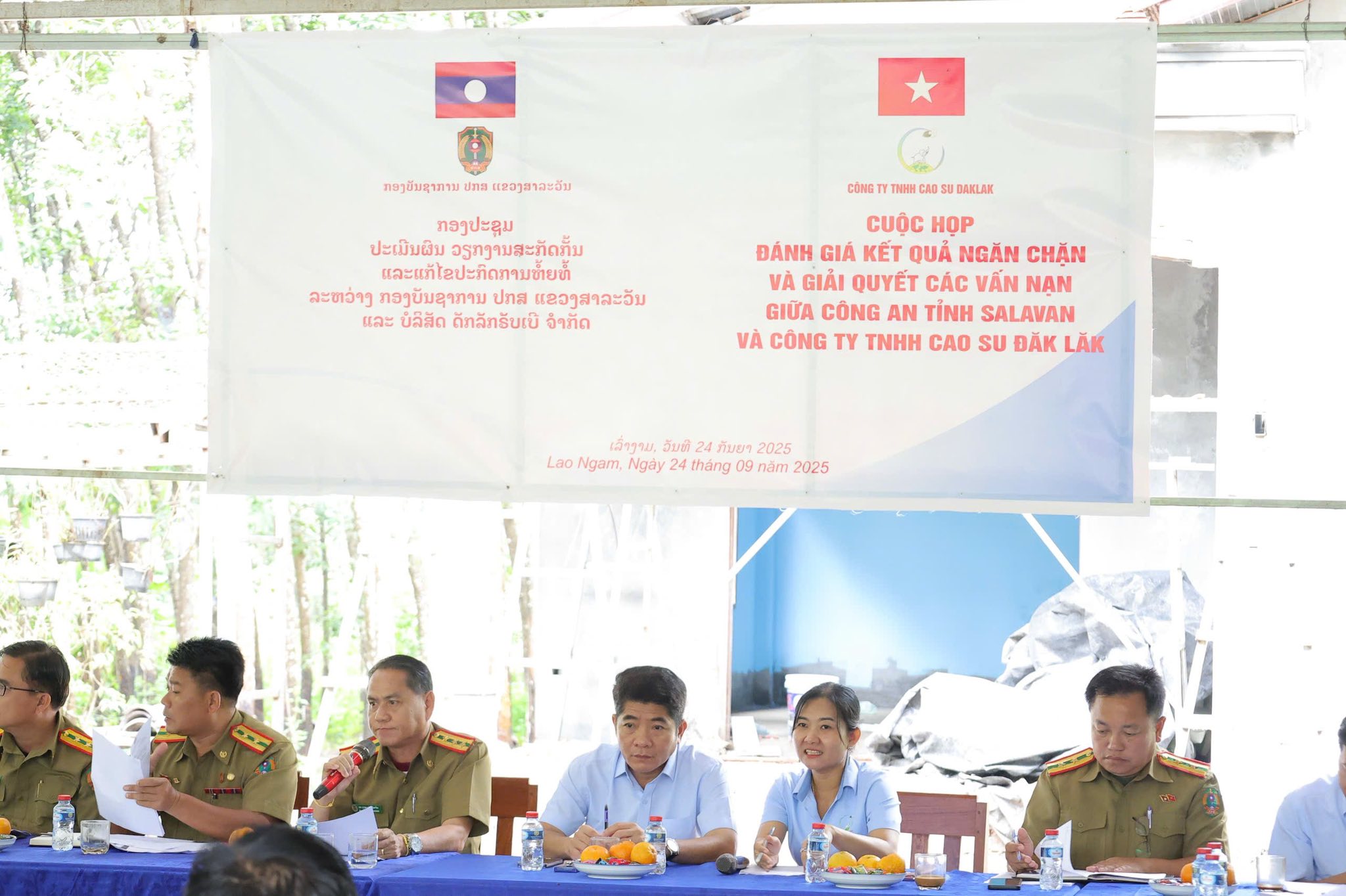 Ngày 24/9/2025, tại Nông trường 4, Công ty TNHH Cao su Đắk Lắk và Công an Tỉnh Salavan đã tổ chức cuộc họp đánh giá kết quả phối hợp ngăn chặn, xử lý các vấn nạn trên địa bàn.