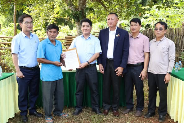 Ngày 17/10/2025, Công ty TNHH Cao su Đắk Lắk đã phối hợp cùng Công an tỉnh Salavan, Ủy ban chính quyền Huyện và Công an huyện Lau Ngam tiến hành đo đạc và bàn giao mặt bằng xây dựng căn nhà tình nghĩa số 02.